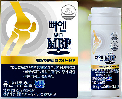 이에 현재 식약처에서는 그 기능성을 인정한 상태로 뼈엔 엠비피 MBP는 건강기능식품으로 인정되어 시중에 판매되는 상황입니다.
